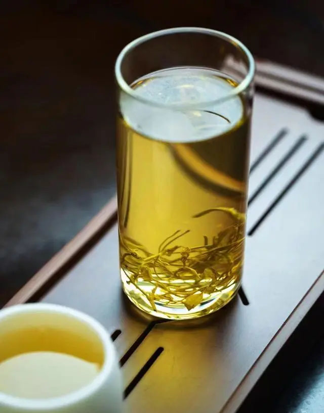 芽尖莓茶(又叫龍須茶)看形態(tài)是最細的芽尖,制成茶后形似龍須,梗比較少,表面白霜雪白,均勻,泡一杯出來,茶湯是清澈透亮的淡黃,很明顯能看到整株伸展的芽尖,喝下去是先苦后甘甜,茶越好回甘效果越好。